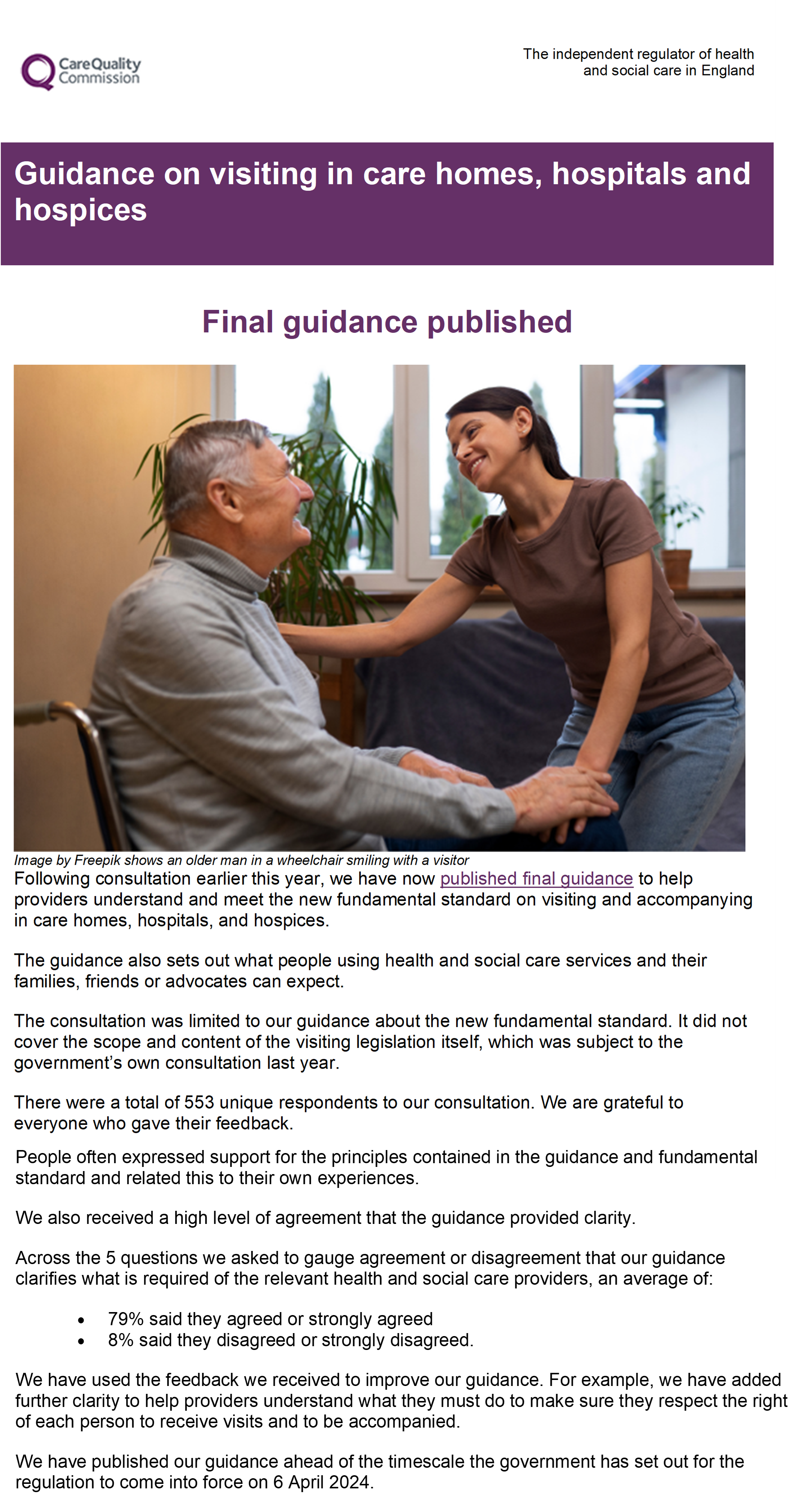 CQC Guidance on visiting care homes, hospitals and hospices by Julie Harding | Apr 4, 2024 | CQC Read the guidance